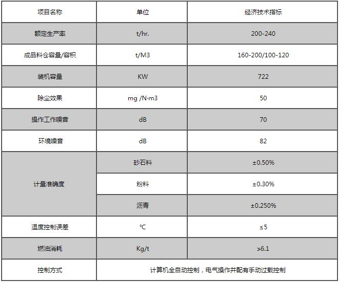 主要技術性能與參數一覽表